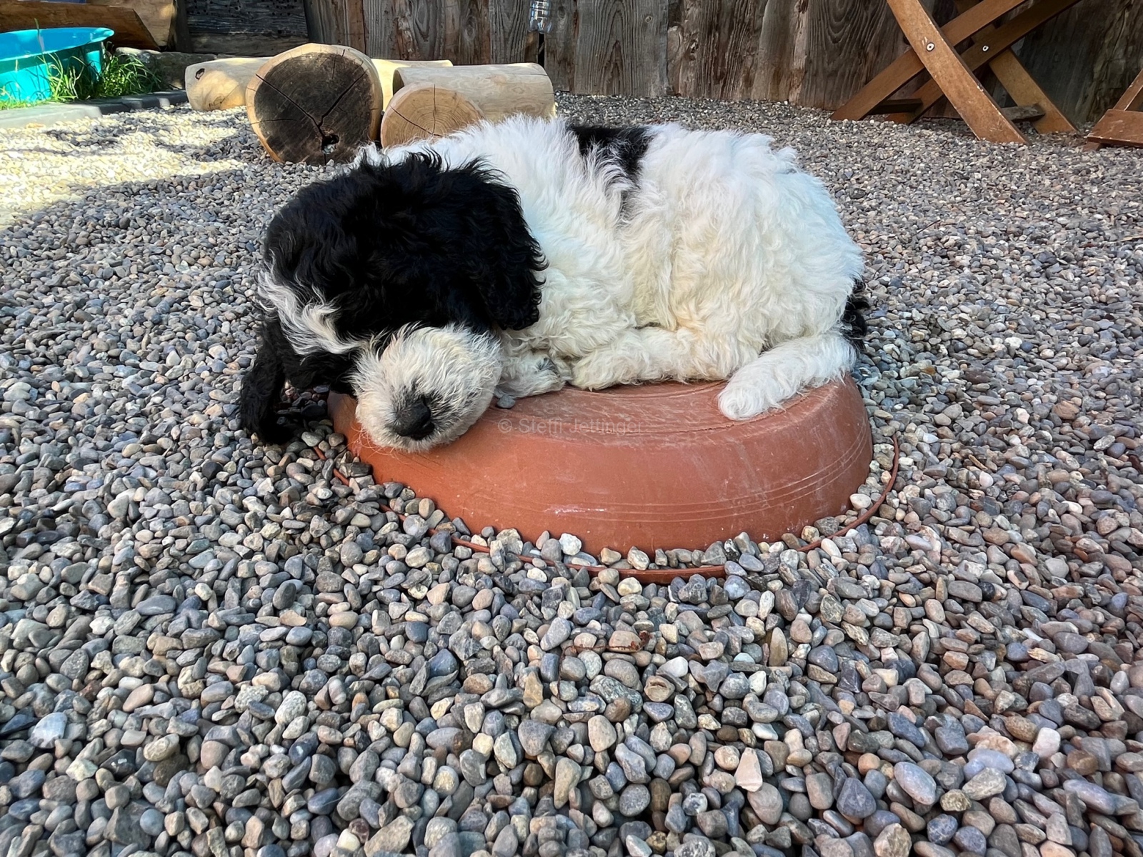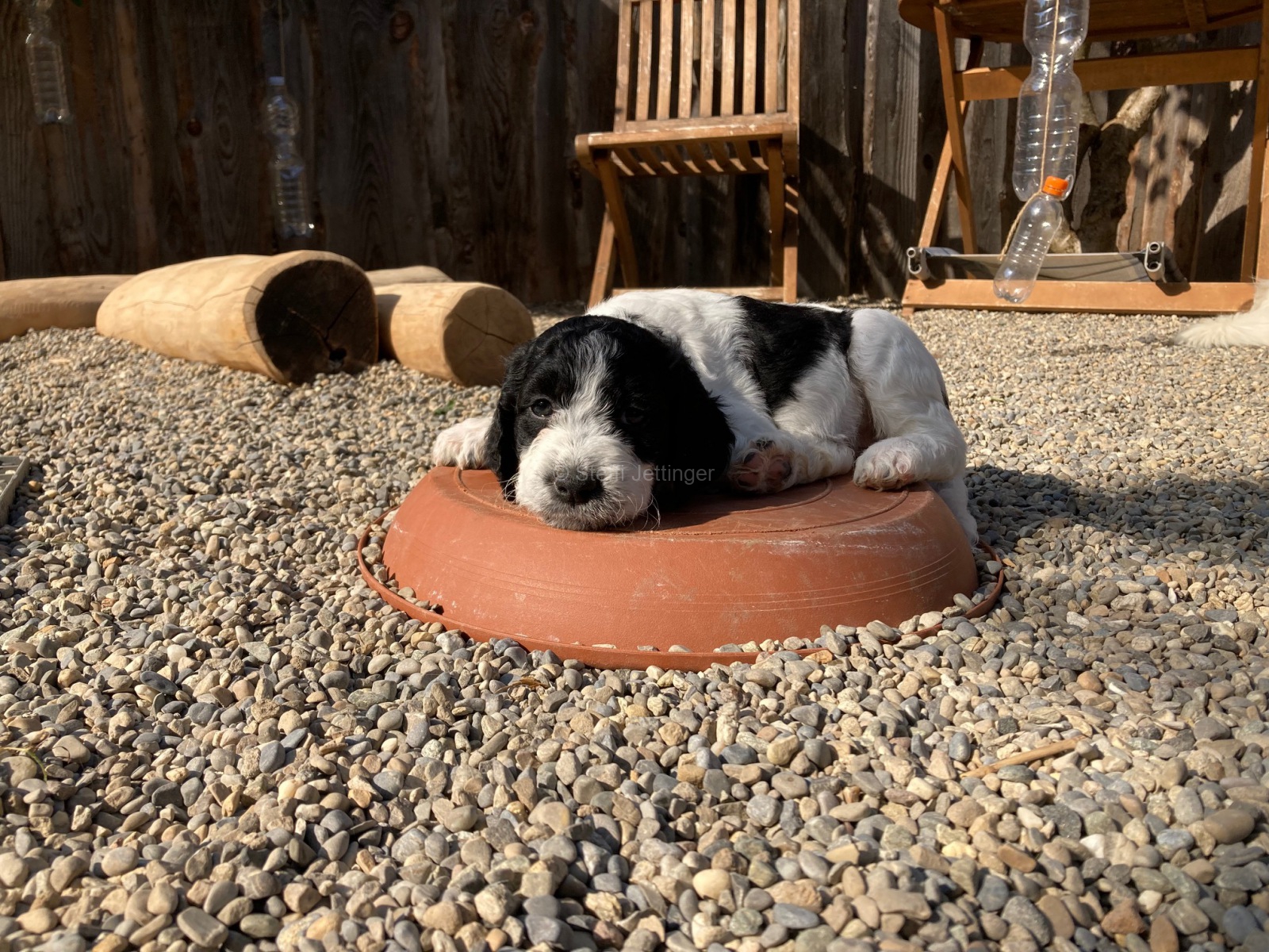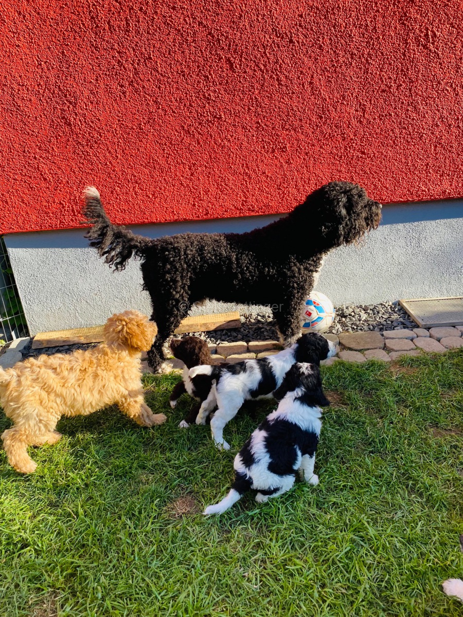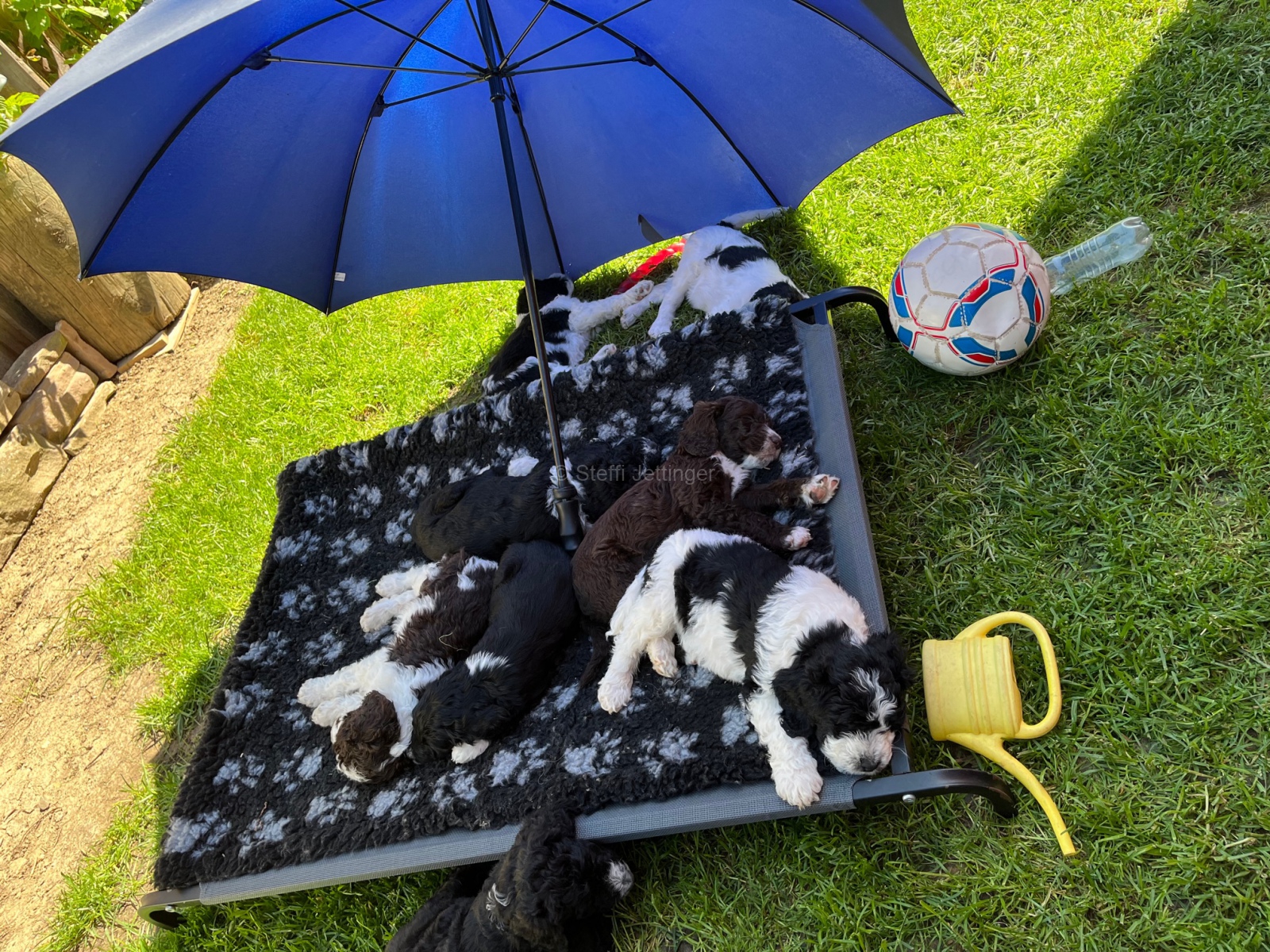 Eine „behütete“ und „reizvolle“ Welpenaufzucht ist mir sehr wichtig! Die Welpen dürfen dosiert spielerisch und ohne Druck in Ihrem Tempo die Welt erkunden. Ausflüge mit dem Auto, in den Wald, in andere Gärten und ans Wasser sind unter anderem für eine gute Prägung für mich unabdingbar, damit sie zu wesensfesten und freundlichen Hunden heranwachsen können.